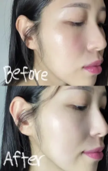 勧奨⑤) 使用後のビフォー&アフター(トーンアップ/ツヤ抑制効果)