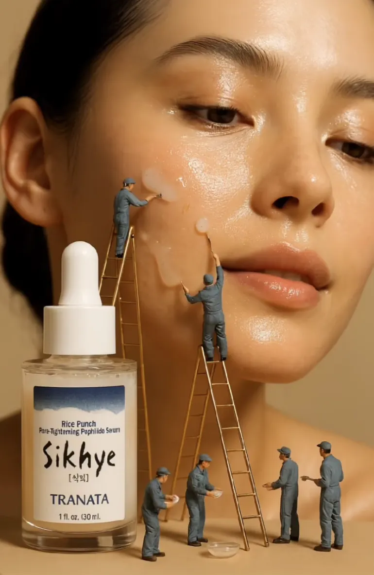 (毛穴の引き締めと肌のキメ改善のビフォーアフター比較カットの演出を参考にしてください。)