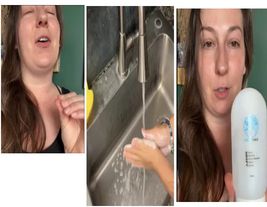 洗面台で手に水をかけて簡単に洗い流せるシーン