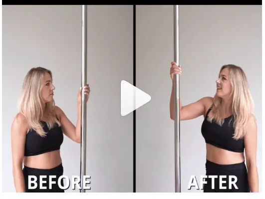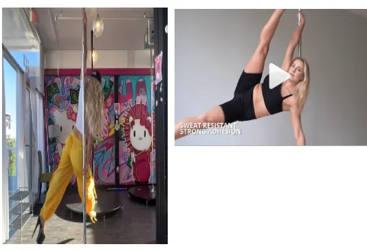 以前に失敗した動作(ポールダンスの回転、鉄棒の懸垂、バーベルRDLなど)を製品使用後に成功するシーン