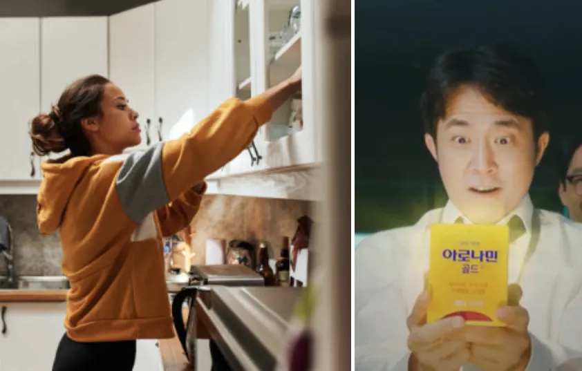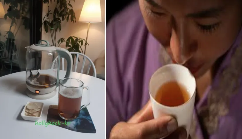 必須STEP③)黒高麗人参を入れて熱いお湯を注ぐシーンを演出した後、実際にお茶を飲んで微笑んだり元気を取り戻した様子を見せてください。
