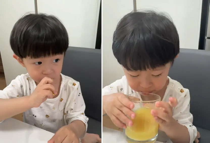 必須STEP③) 子どもたちが製品を持って美味しそうに食べているシーンで動画を締めくくってください。