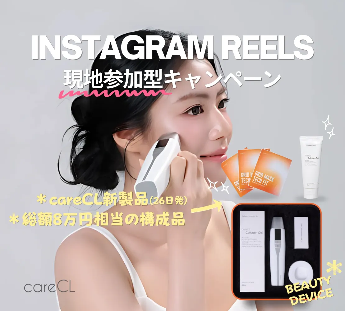 careCLで26日に新しく発売される新商品に加え、マスクパックやコラーゲンジェルなどの構成品を、訪問時にお渡しいたします。