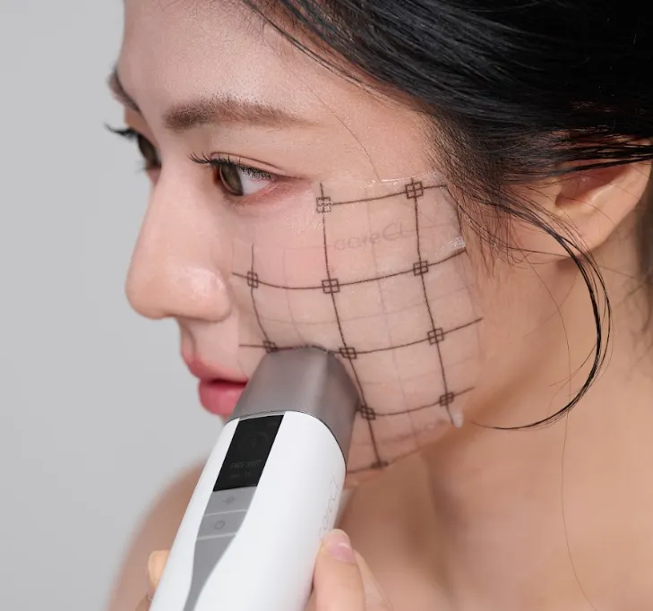 必須STEP②) グリッドマスクパックを顔に貼った状態で、「SHOTモード」で格子のマスに合わせて使用してください。