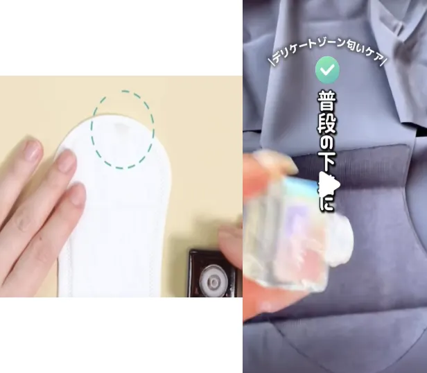 例:「インナーパフューム知ってる? 韓国のフェミニンケアブランドで、生理用ナプキンや下着にポトッと落とすだけで、生理のにおいの心配がなくなるよ