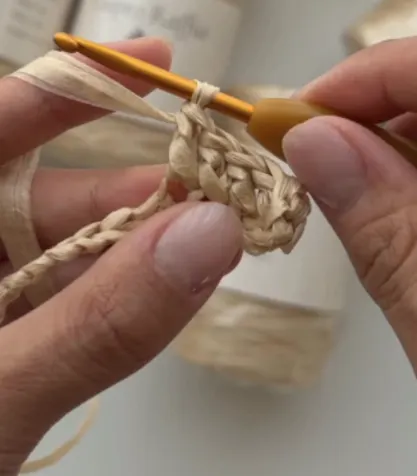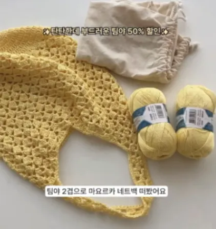 必須STEP③) 編み上がった作品と使用した糸(製品)を一緒に撮影してください。