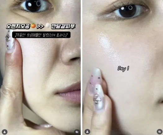 (毛穴の引き締めと肌のキメ改善のビフォーアフター比較カットの演出を参考にしてください。)