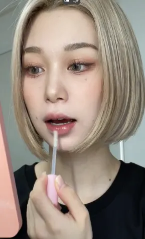 唇のラインに沿って、内側から外側へ向かってグラデーションになるようにぼかすと、ガラスのようなツヤ感が現れます。