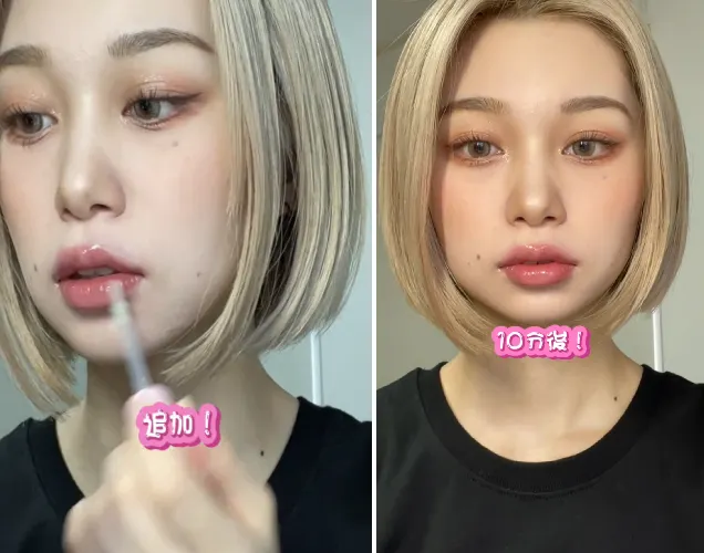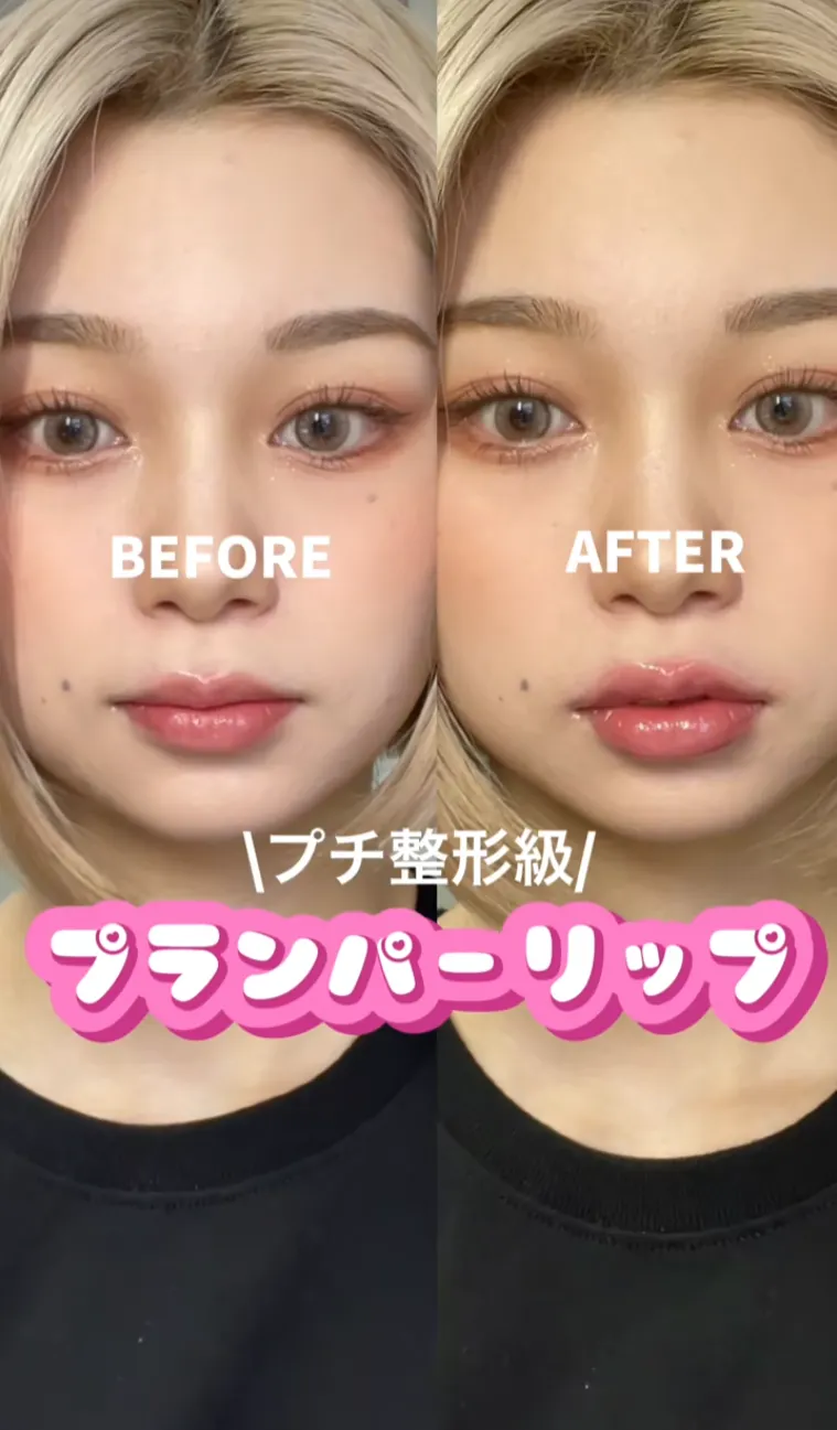 10分後、ボリューム感が出た唇の変化を見せてください。