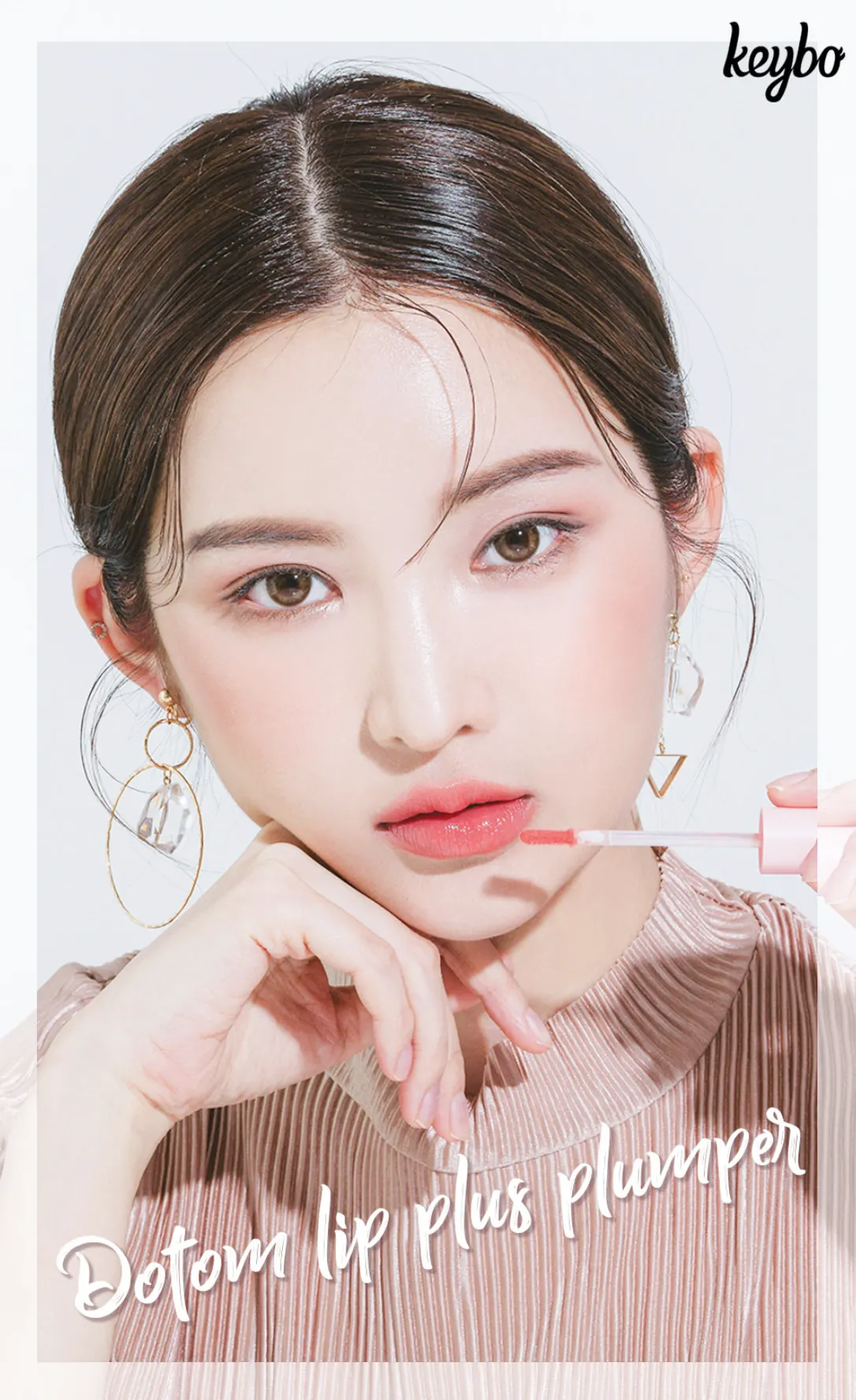 「唇がしっとりぷるんとしました」/「Amazon JapanでKeybo Lip Plus Plumperを検索!」のような字幕追加。