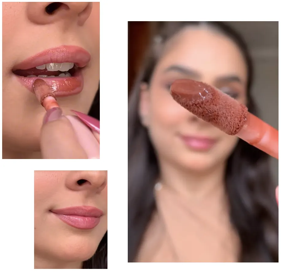 リップグロスをラグジュアリーに塗るシーンを演出。