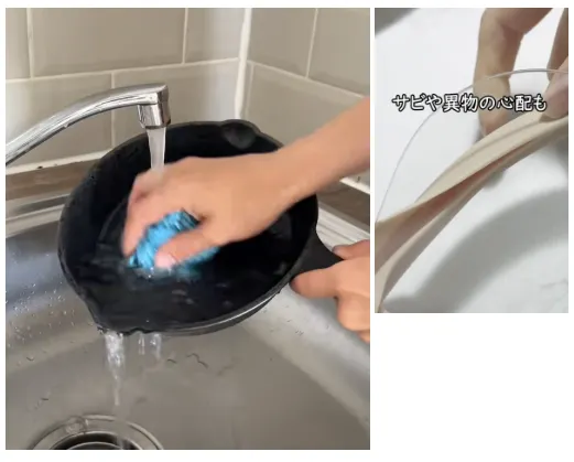高温に強い蓋の縁が剥がれにくく、食品への汚れの混入を防止。清潔で健康的な調理が可能。