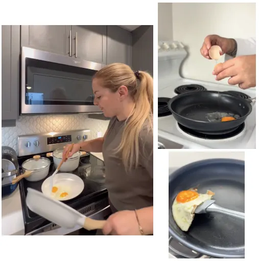 「IH&ガスコンロ対応」「ノンスティック・セラミックコーティング」などの特長を説明してください。料理の性能に感嘆する様子を演出してください。