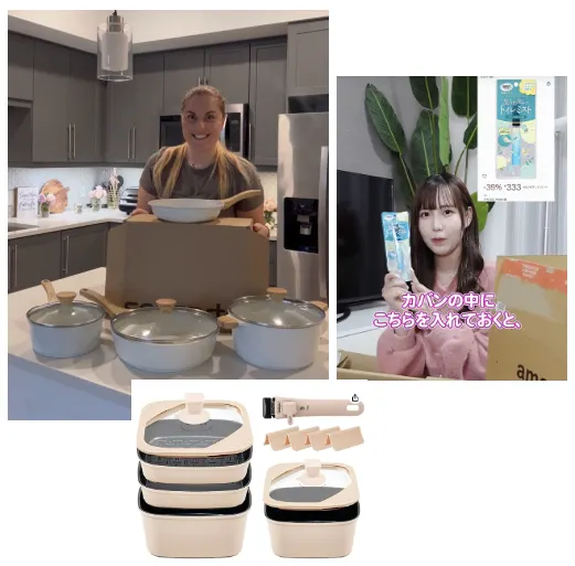 インフルエンサーが製品全体のパッケージを見せるシーン