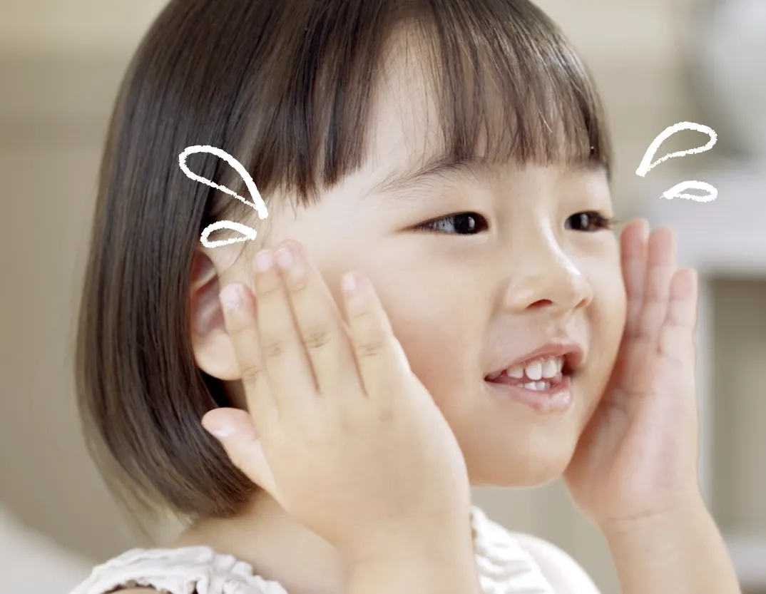 必須②) 子どもが自分で塗る、またはお母さんが塗ってあげる様子を演出してください。