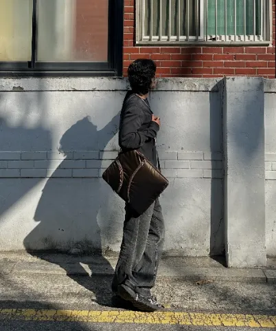 必須④) (ディテールカット) ノートPCバッグを手持ちで持つ演出、クロスボディで持つ演出の両方を見せる