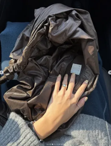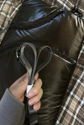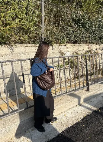 必須④) 製品活用ディテールカット (クロスボディで掛けた写真 または ポケットに直接収納しているような写真)