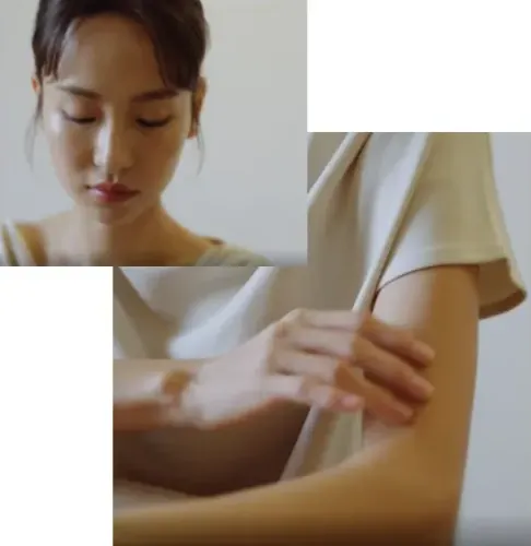 必須④) 腕や首元などにも使用し、かゆみや乾燥を感じたときにも、早い鎮静によって、より快適になった肌と表情を演出してください。